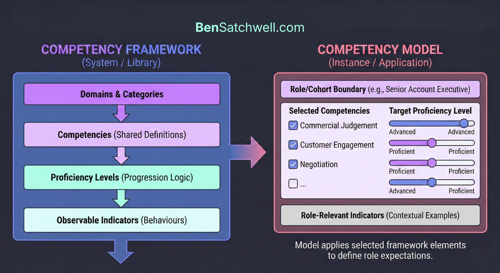 A competency framework provides consistency across the organisation. A competency model provides relevance.